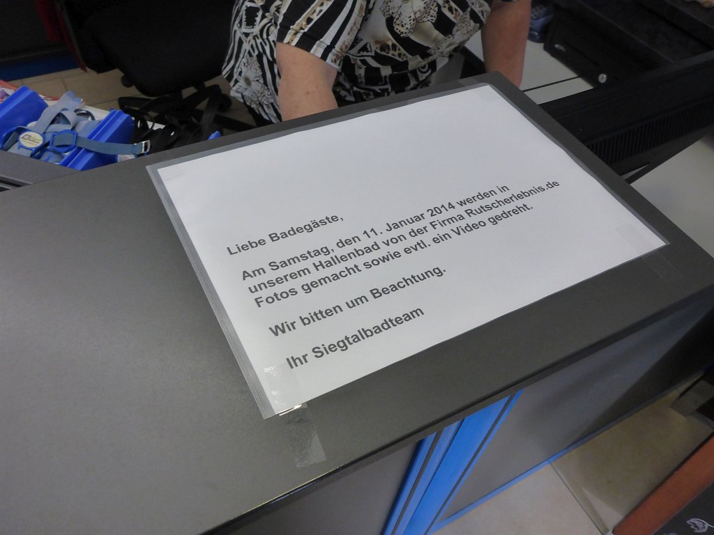 Bei einzelnen Bädern sind wir dazu übergegangen, "Ausweise" mit Namen, Hinweis auf das Portal und Zweck der Aufnahmen zu tragen, um Gäste zu beruhigen und dem ganzen einen offiziellen Charakter zu geben. Sofern möglich, trage ich hierbei auch das Rutscherlebnis.de-Poloshirt, welches aber derzeit nur als Einzelanfertigung existiert und demnach auf längeren Touren geruchsbedingt nur an einem Tag zum Einsatz kommen kann ;)