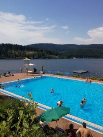Der Ausblick vom Becken über den Schluchsee ist echt der Hammer, hat schon was von einem Panoramapool. Die Wassertemperatur war bei diesem Wetter ( KW30/2019 ) recht angenehm, kalt genug um sich abzukühlen, aber nicht so kalt um sich den Hintern abzufrieren.