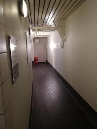 Mit dem Chiparmband, mit welchem sich auch die Umkleideschränke schließen lassen, geht es nun durchs Drehkreuz. Die Umkleidekabinen liegen eine Etage tiefer im Untergeschoss. Dieser Bereich wirkte auf mich sehr düster. Ich war für einen kurzen Moment echt am überlegen : bin ich hier richtig ??.
