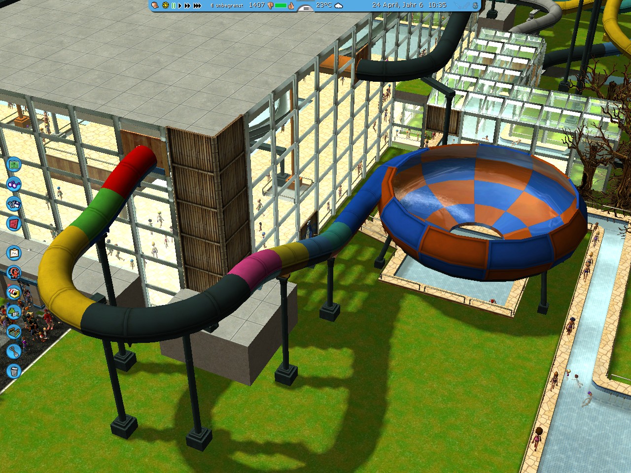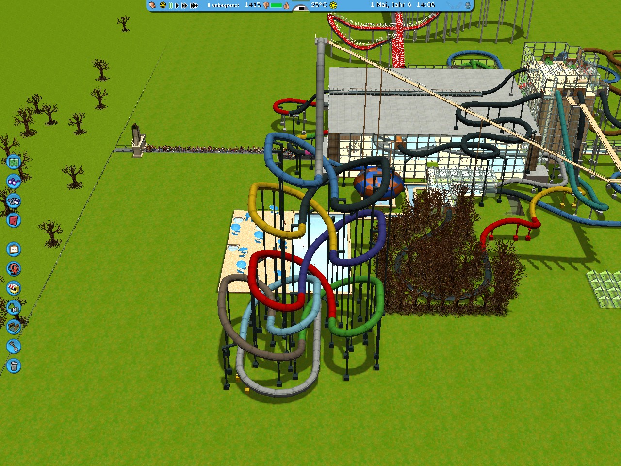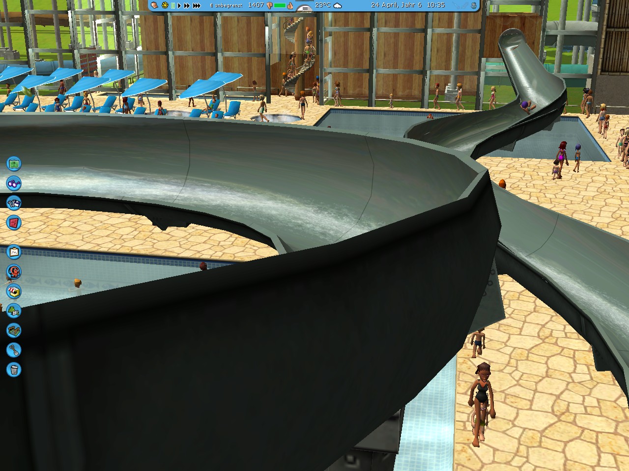 Vorher habe ich aber an einem Bad namens Tropico angefangen, aber in Moment lasse ich das Projekt stehen. Es hat eine High Fly, eine Trichterrutsche, eine Black Hole, eine Reifenrutsche und eine Kinder-/Familienrutsche. Nach der Rodelbahn mache ich aber wahrscheinlich daran weiter.