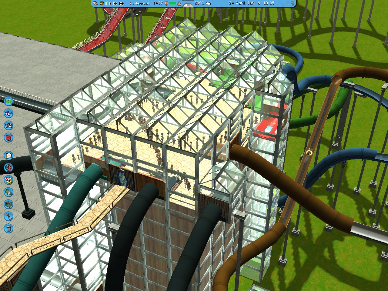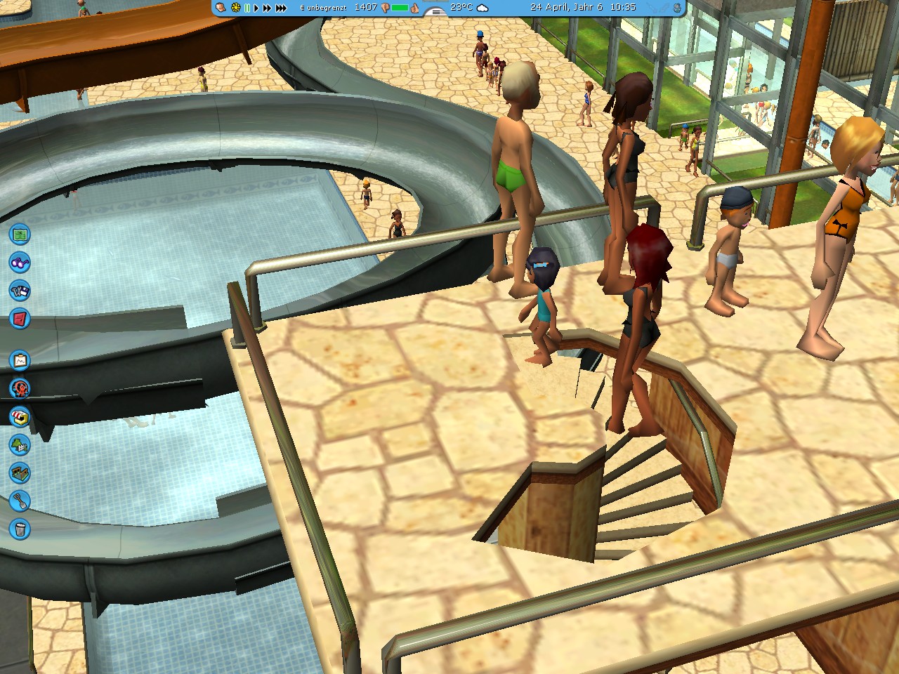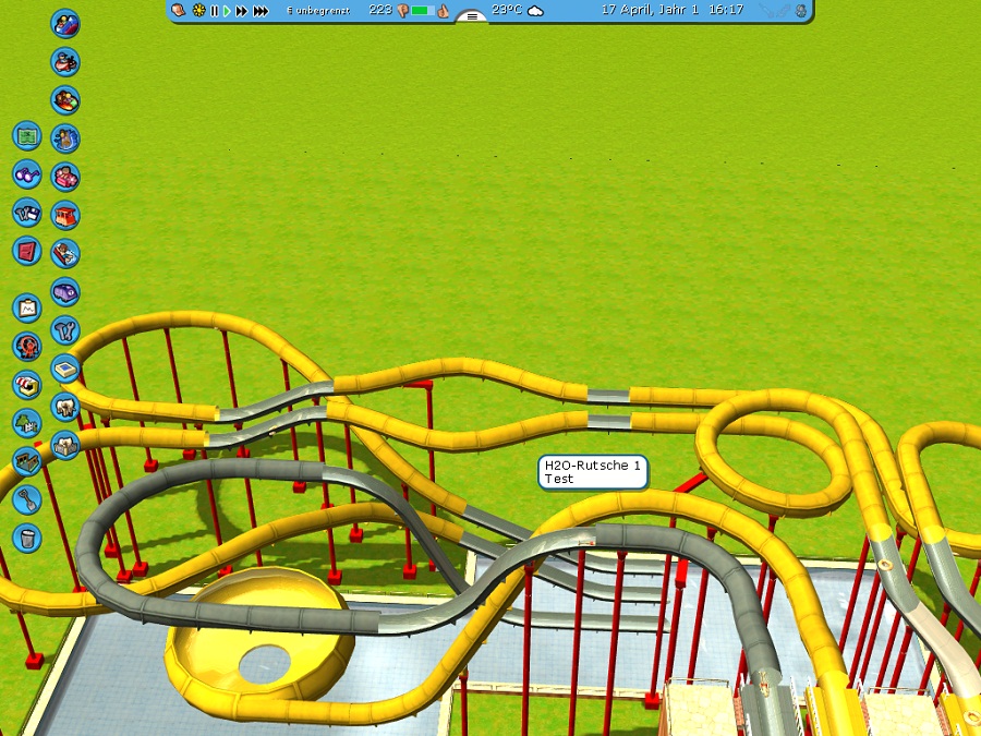 Vorher habe ich aber an einem Bad namens Tropico angefangen, aber in Moment lasse ich das Projekt stehen. Es hat eine High Fly, eine Trichterrutsche, eine Black Hole, eine Reifenrutsche und eine Kinder-/Familienrutsche. Nach der Rodelbahn mache ich aber wahrscheinlich daran weiter.