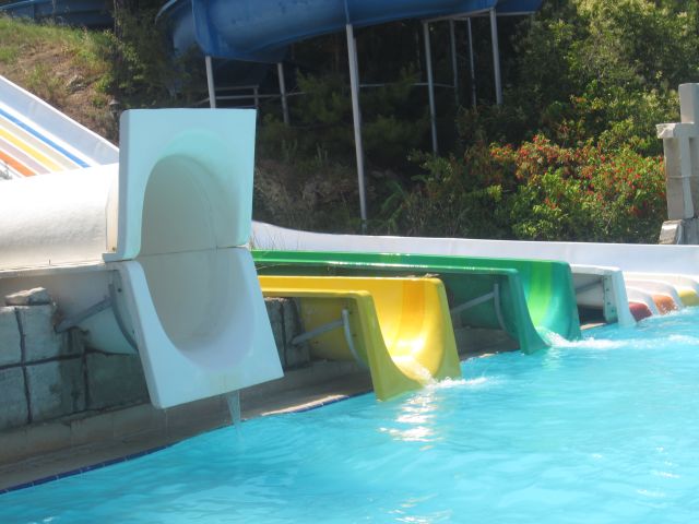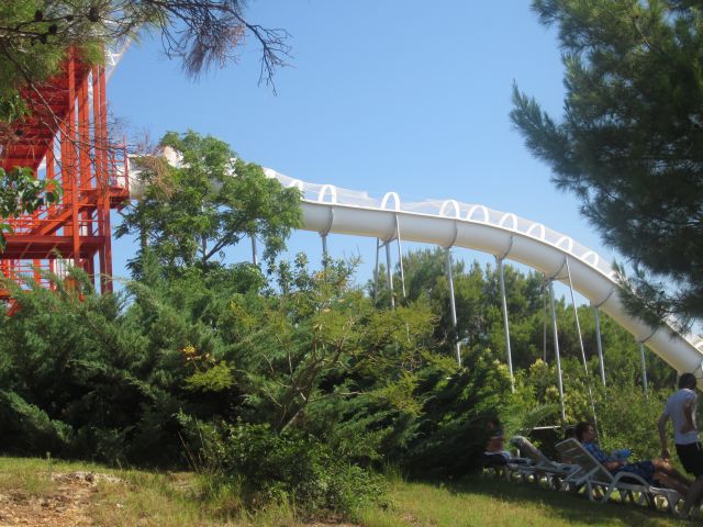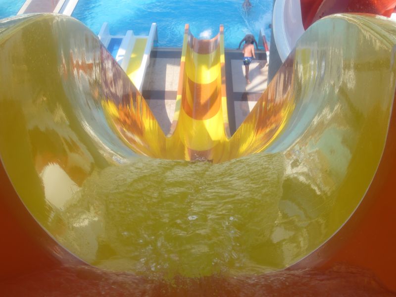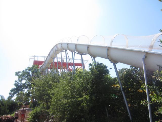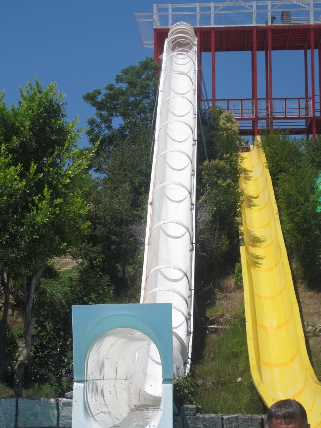 Dan gab es noch eine Blackhole (Orange) und eine überraschend schnelle Bodyslide (Blau). Die Blackhole bin ich nicht gerutscht da man dort zu lange anstand (fast 40°C, kein schatten während dem anstehn, auf heißen Steinen).